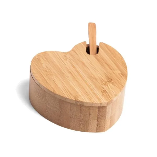 | Item | AÇUCAREIRO COM FORMATO DE CORAÇÃO E COLHER EM BAMBU |