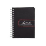 Agenda diária 2025 em couro sintético com wire-o. Possui bolso plástico, página para dados pessoais, calendário 2024 á 2026, mapa do Brasil, mapa global, índice telefônico e planejamento. OBS.: PEDIDOS APENAS MÚLTIPLOS DE 10 PEÇAS!