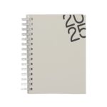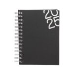 Agenda Wire-o produzida em material sintético, contém bolso plástico atrás da capa, dados pessoais, calendário de 2024 à 2026, mapa do Brasil, mapa-múndi, índice telefônico e planejamento.