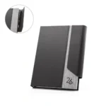 Agenda A5 em PU (58% reciclado) e PET reciclado (100% rPET) 300D com fecho magné,tico. Possui um suporte para esferográfica (não inclusa) e marcador em fita. Está organizada em plano diário. Uma escolha com classe e requinte para o seu cotidiano. 148 x 210 mm