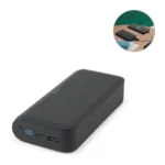 Bateria portátil com carregador wireless em ABS 100% reciclado, com capacidade de 20’000 mAh e tela indicador de nível de carga. A power bank tem uma porta de entrada/saída USB-C e uma porta de saída USB, ambas de carregamento rápido PD 20W. O carregador wireless tem uma potência máxima de 15W. Incluso um cabo de carregamento com saída dupla USB-A/USB-C. Compatível com dispositivos móveis com tecnologia de carregamento sem fios. Fornecida em caixa presente de papel kraft reciclado. 141 x 72 x 29 mm | Caixa: 145 x 93 x 34 mm