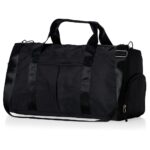 Bolsa esportiva de 35 litros em poliéster resistente à água com cinco compartimentos, sendo dois deles exclusivos para tênis e itens molhados. Contém bolso para encaixe em malas de viagem, bolso interno, alça de mão lateral extra e acompanha alça transversal.