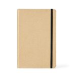 Caderneta de kraft com marca página em cetim e elástico para lacre. Contém aproximadamente 80 folhas marfim pautadas.