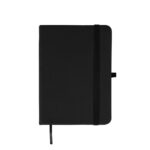 Caderneta emborrachada com elástico para lacre, marcador de página em cetim e porta caneta, contém aproximadamente 84 folhas marfim com pauta.