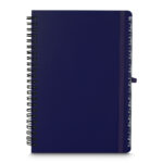 Caderno de anotações em PP(Polipropileno) reciclável com suporte para caneta e miolo de 70 folhas brancas pautadas.