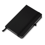 Caderno de anotações com elástico no tamanho A6 suporte para caneta, capa dura em material sintético, miolo 80 folhas pautadas cor bege.