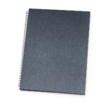 Caderno grande percalux com pintura metalizada e wire-o prata. Miolo permanente e folhas para preenchimento de dados pessoais, comerciais e contatos. OBS.: PEDIDOS APENAS MÚLTIPLOS DE 10 PEÇAS!