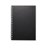 Caderno percalux emborrachado com espiral metálico. Possui aproximadamente 94 folhas brancas pautadas e páginas para: dados pessoais, calendário de 2024 à 2027 e planejamento.