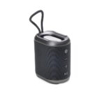 Caixa de som multimídia. Material plástico resistente a água, e falantes com acabamento em tecido, possui um cordão de nylon acoplado para facilitar o transporte. A caixinha funciona nos modos Bluetooth, Radio FM, Cartão TF (Micro SD), Auxiliar e USB. Possui bateria de longa duração, com autonomia de aproximadamente 35 horas continuas de reprodução. É possível emparelhar 2 caixinhas do mesmo modelo e executar o som sincronizado em ambas. Acompanha cabo USB e cabo auxiliar P2