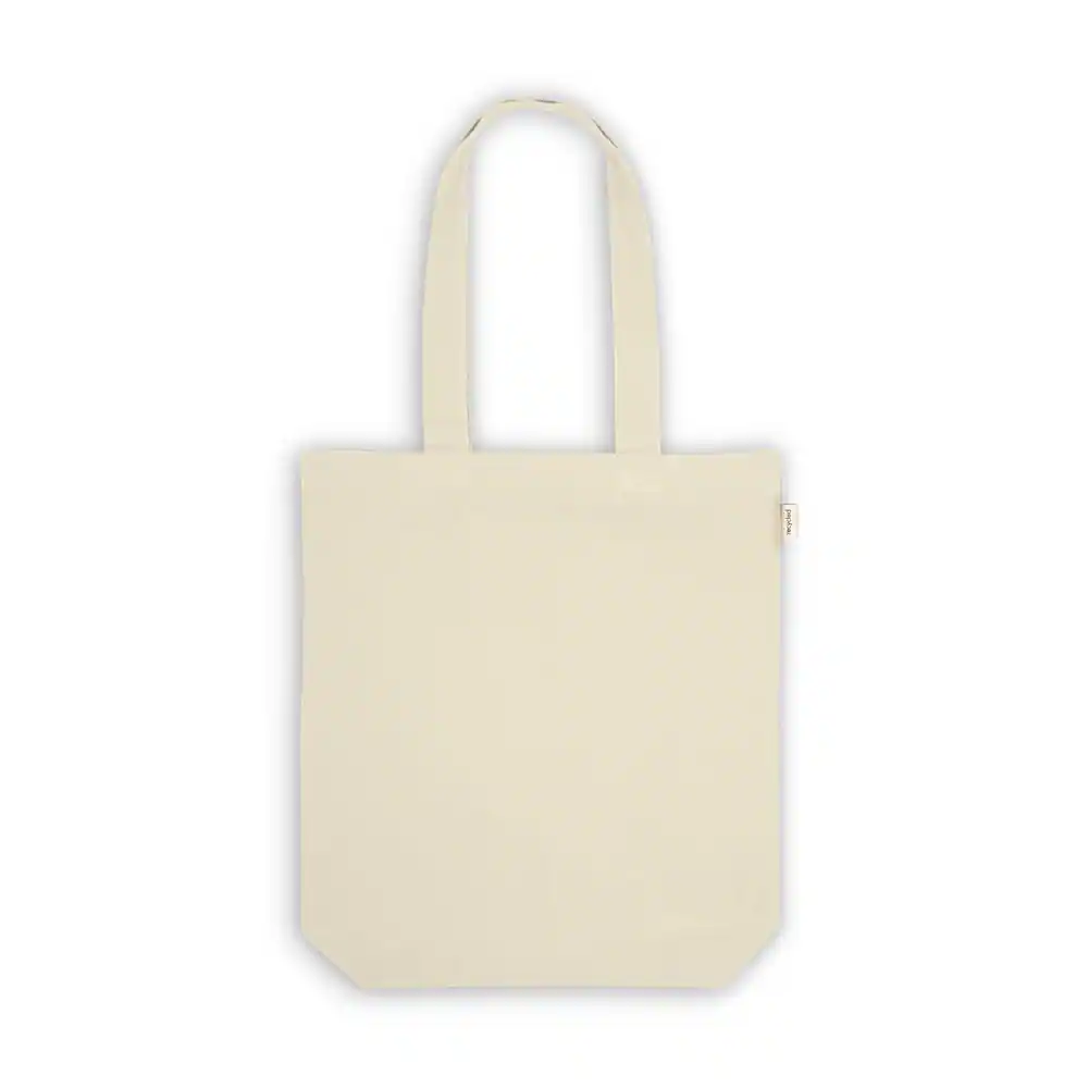 Sacola em 100% algodão reciclado (220 g/m²) com alças de 65 cm. 380 x 420 x 100 mm