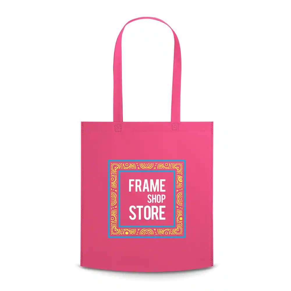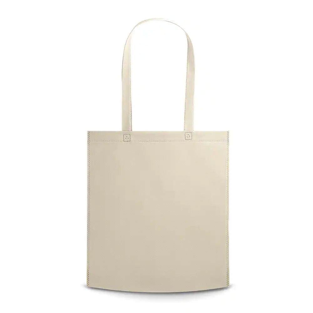 Sacola em non-woven (80 g/m²) termo-selado com alças de 75 cm. 380 x 415 x 85 mm