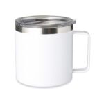 Caneca térmica de inox 450ml com parede dupla e tampa com acesso ao bocal.