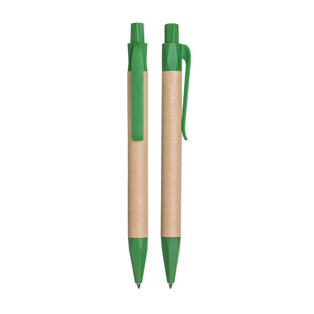 Caneta corpo em papel reciclado com detalhes em plástico PLA biodegradável.