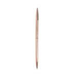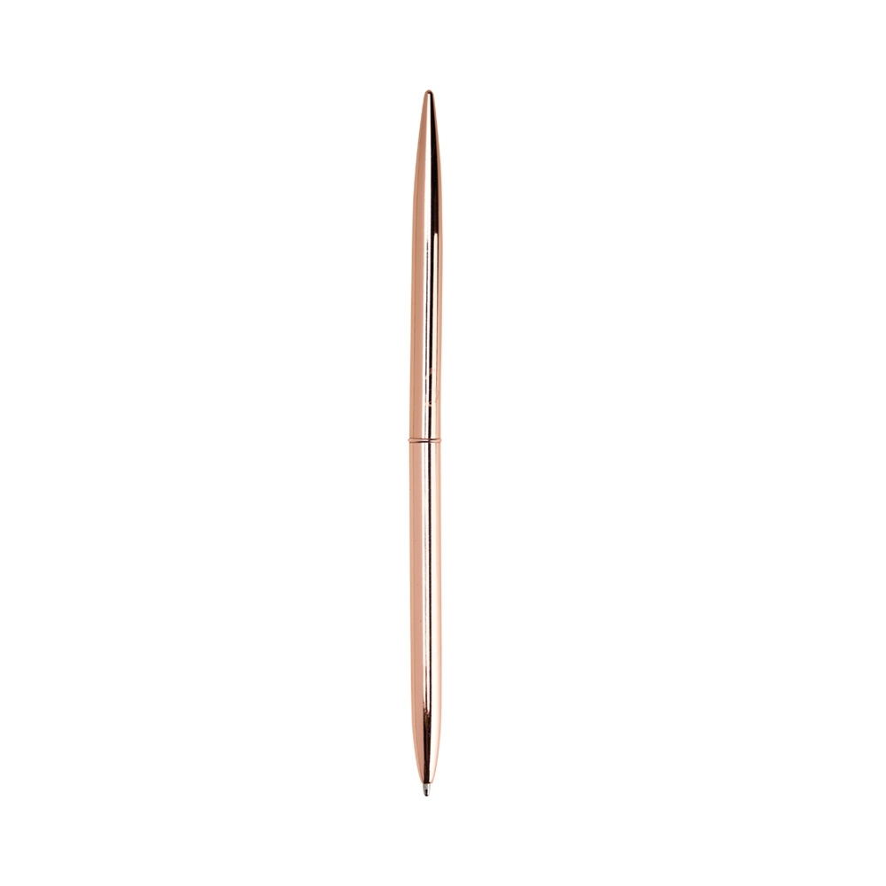 Caneta metálica com acionamento por rotação e carga esferográfica azul 1mm.
