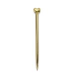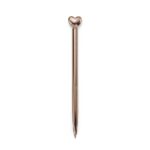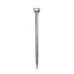 Caneta metálica com carga esferográfica azul e acionamento por rotação.