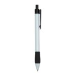 Caneta plástica com detalhe emborrachado, carga esferográfica azul e acionamento por clique. OBS.: PEDIDOS MÍNIMO DE 50 PEÇAS!