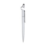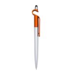 Caneta plástica com suporte para celular e touch screen. Carga esferográfica azul e acionamento por rotação. OBS.: PEDIDOS MÍNIMO DE 50 PEÇAS!