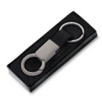 Chaveiro produzido em liga de zinco, ferro e alumínio.