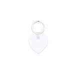 Chaveiro de acrílico em formato de coração, frente verso e liso. Possui prendedor de plástico que conecta a argola metálica.