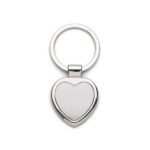 Chaveiro de metal formato coração, possui chapa central em inox e verso brilhante liso.