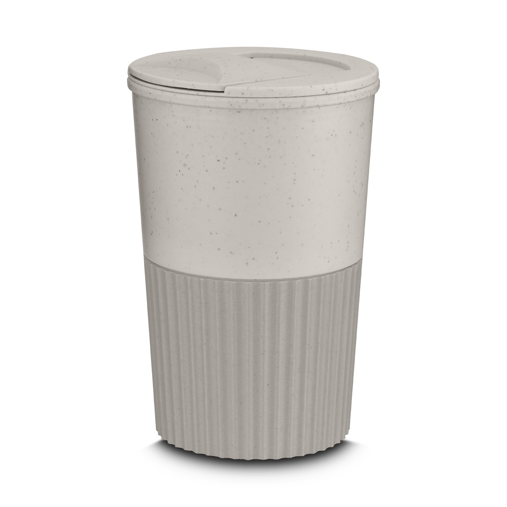 Copo plástico produzido com fibra de trigo e plástico, com capacidade de 400ml e tampa rosqueável.