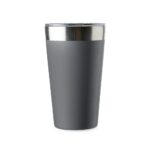 Copo térmico com capacidade de 473ml feito em inox com parede dupla, acompanha tampa acrílica de encaixe com bocal.