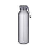 Garrafa em alumínio reciclado acabamento mate com capacidade 600ml. Tampa rosqueável em plástico e alça de transporte emborrachada.