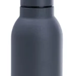 Garrafa cinza em metal Inox, confeccionada com dupla parede em Inox, assim conseguindo manter e preservar os líquidos gelados e quentes por mais tempo.