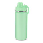 Garrafa térmica em aço inox com parede dupla com capacidade de 570 ml. Tampa rosqueável com anel de silicone, alça plástica em formato de mosquetão e bico rosqueável para fácil acesso. Design com frisos na tampa e pintura a pó.