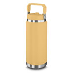 Garrafa térmica em aço inox com parede dupla com capacidade de até 900ml. Tampa rosqueável com anel de silicone para vedação. Alça de transporte em plástico. Permite-se hidratar pelo bico, com canudo. Pintura a pó.