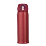 Garrafa térmica feita em inox com parede dupla, capacidade de 400ml. Tampa com trava de segurança e botão de acionamento.