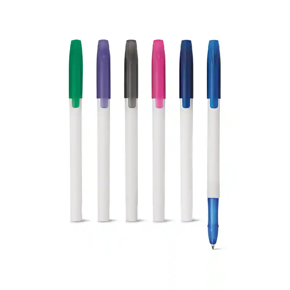 Esferográfica em PP com acabamento matt no corpo e frost na ponteira e tampa. Até 1.5 km de escrita. ø10 x 142 mm
