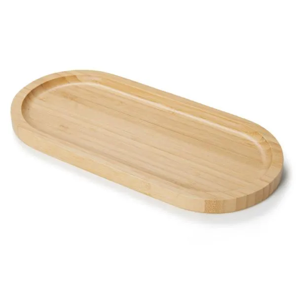 Conta com bandeja em bambu para servir com formato oval e duas canecas em alumínio esmaltado branco.
