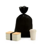 Composto por marmita dupla em Fibra de Trigo com tampa em Bambu e copo em Fibra de Bambu.