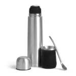Conta com cuia e garrafa térmica em Aço Inox; bomba para chimarrão / tereré; bolsa para a garrafa em material sintético com alça.