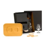 Composto por petisqueira em Bambu com duas cumbucas em Fibra de Bambu; duas espátulas de 14 cm em Bambu e duas taças em vidro para Cerveja.