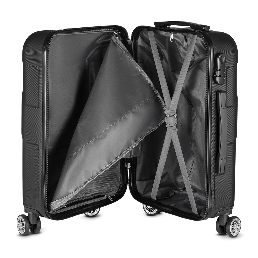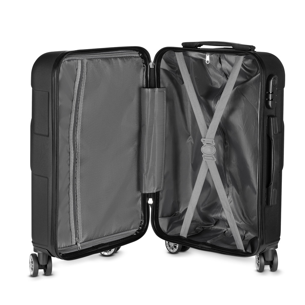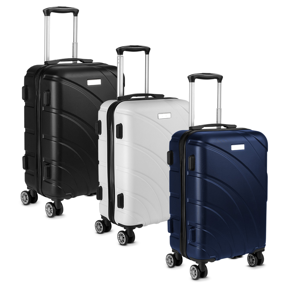 Mala de bordo em plástico ABS e interior em nylon 210D;