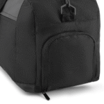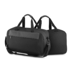 Mala esportiva em poliéster 600D e detalhe em PVC. Conta com um compartimento de porta tênis na lateral com zíper, alça de ombro ajustável, alça de mão dupla e bolso frontal com ziper.