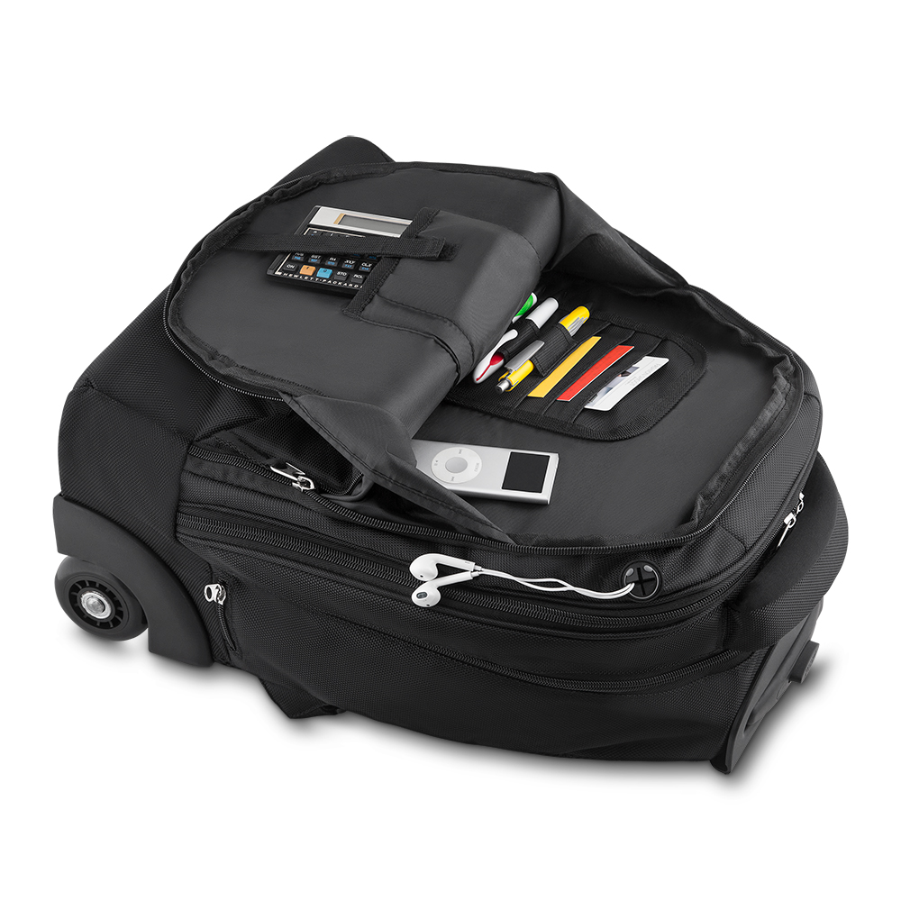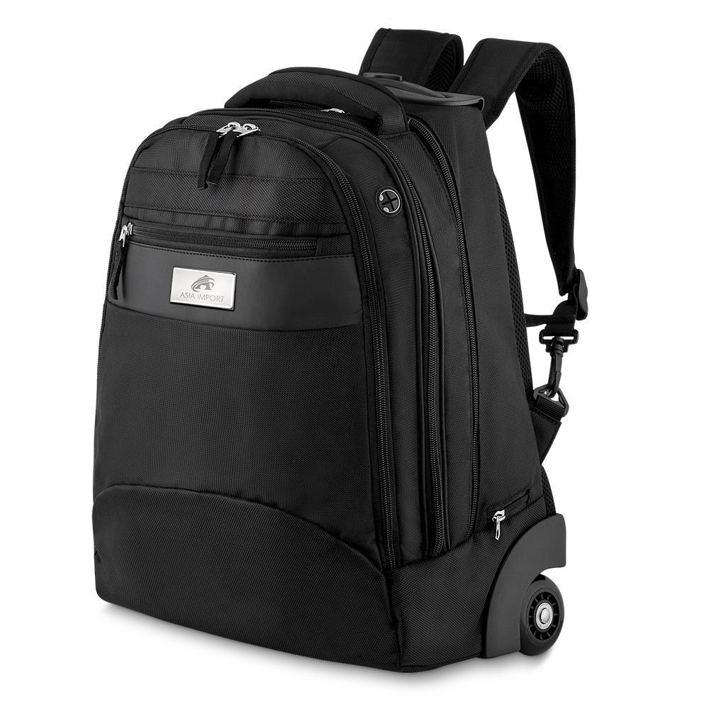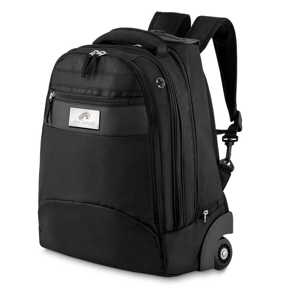 Mochila executiva com rodinha, tecido poliéster 1680D e interior em 210D.