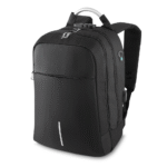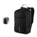 Mochila para notebook em tecido poliéster 50% Oxford e 50% PU e interior em poliéster 210D.