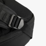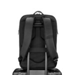Mochila Premium, adequada para viagens de negócios, produzida em tecido de poliéster 600D e interior em 210D, alças de ombro acolchoadas, e bolso frontal. Aceita notebook de até 15,6”, porta USB na lateral, engate para mala de viagem, com dois bolsos nas laterais.