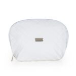 Necessaire puff matelassê, material em couro sintético. Possui uma plaqueta prata no centro para gravação.