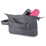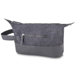 Nécessarie com detalhes em couro sintético, tecido poliéster 600D,alça de mão,bolso externo,botões laterais extensor,gravação Frontal.