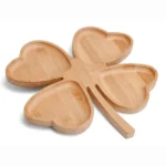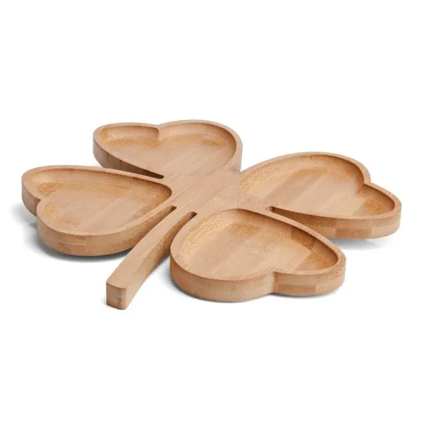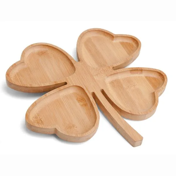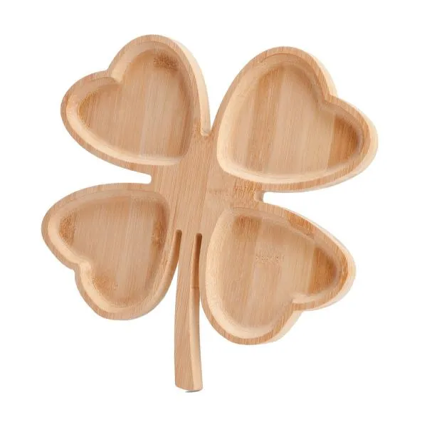 Petisqueira em bambu com formato de trevo de 4 folhas. Conta com 4 divisões.