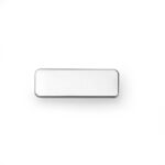 Plaquinha metálica para personalização. Possui acabamento brilhante, hastes sem ponta na parte traseira, para fixação fure o tecido, encaixe e dobre as hastes.