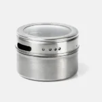 Porta Condimentos em Bambu/Aço Inox com acessórios. Acompanha base com furos para parede e suporte para rolo de papel toalha em Bambu; 4 porta condimentos em Aço Inox com tampa.
