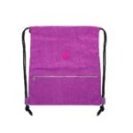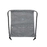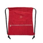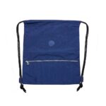 Mochila saco em nylon impermeável com bolso frontal de zíper e placa emborrachada personalizável.