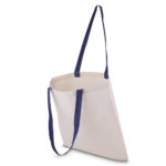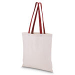 Sacola em algodão cru 140g/m² com alça colorida em algodão liso. Alça com altura de 29 cm, ideal para transporte.