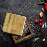 | Item | SALEIRO EM BAMBU COM TAMPA GIRATÓRIA |