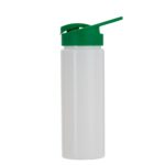 Squeeze de polietileno 550ml com tampa plástica rosqueável, contém alça e tampa protetora para o bocal.